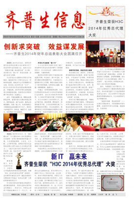 新IT 贏未來 齊普生榮獲“H3C 2014年優(yōu)秀總代理”大獎